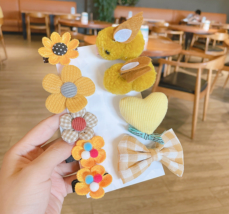 Series: Cartoon children's net red hairpin, bowknot, cute bunny, daisy, five-petal flower princess hairpin, baby hairpin set